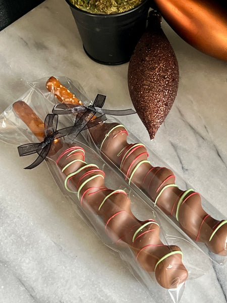 2. Two Caramel Pretzel Rods - Crunchy pretzel rods wrapped with our hand-crafted caramel, dipped in chocolate.